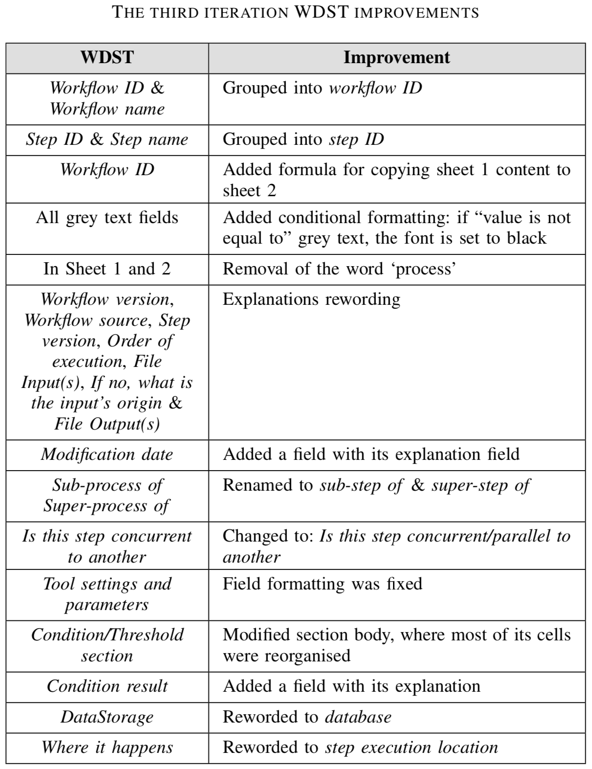 - WDST changes
